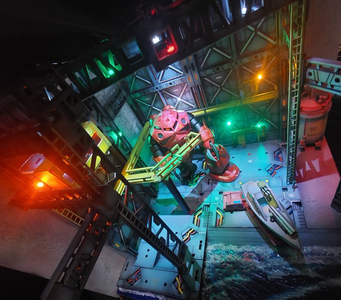 海岸洞窟基地 完成です( ・`д・´) 海をレジンで作成 モノアイはネオジムで可動式&ビコーン ジオラマのベースはあの100均とプラ板だけです❗ #gunpla #ジオラマ #切り抜き画像で魅せる #ガンプラの画像貼るとRTされると聞いて #断然キット改造派 #モデラー様達と繋がりたい