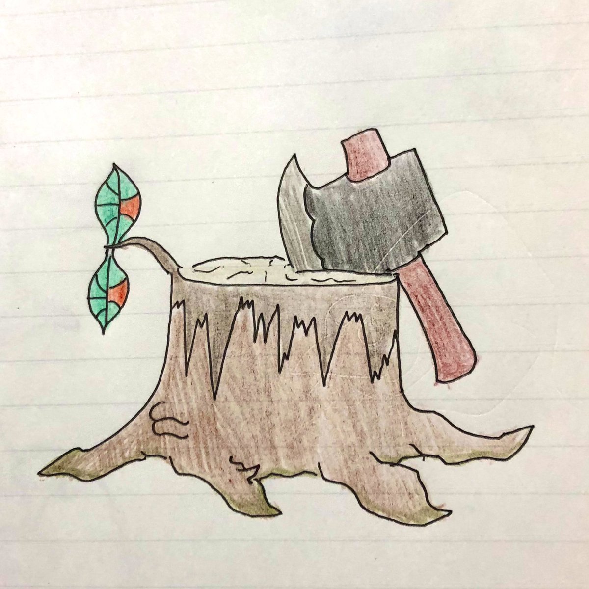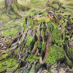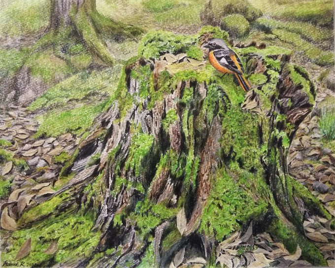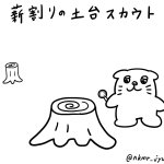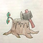 カブツムリです。 疲労感ヤバめな人の目の前に急に現れて疲れを完全に癒してくれる。 背中のオノは成長すると生えてきて、生息地によって形状が違ってくる。 #イラスト好きな人と繋がりたい #絵描きさんと繋がりたい #オリキャラ #切り株 #カタツムリ