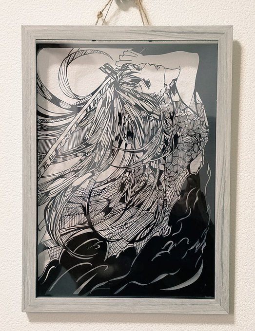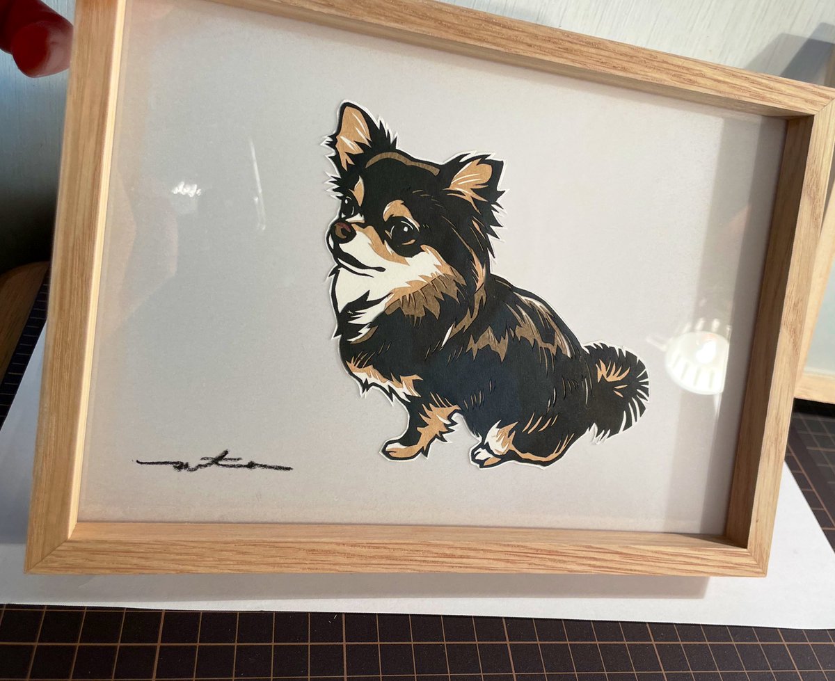 切り絵 完成しましたー!こんな感じに額装したい 6年ぶりにアイコンになっている娘を切り直してみました^^* 最近、視力の低下が酷くて、出来る時に制作したいので懐かしいの続きます! #切り絵 #切り絵イラスト #イラスト #papercutting #papercutart