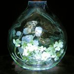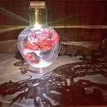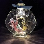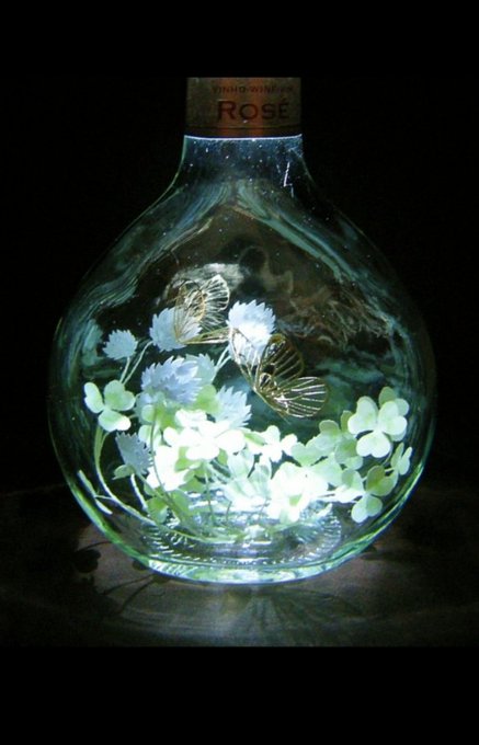 まだ試行錯誤中ですが…… 切り折り紙のベタ。 強度保持と着色のために和紙で裏打ち、レジンで固めたら折り畳めなくなったので……テラリウムポットに入れてみました。 裏打ちしない方が切り絵らしくてよかったかな? #切り絵ボトルアート