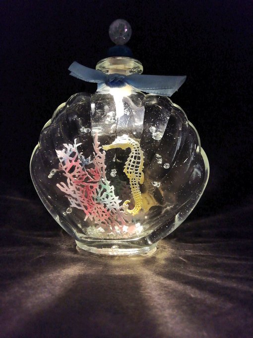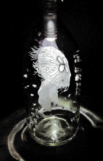 心なんて汚ならしいものは あるもんかい。いまごろまで。 はらわたもろとも 波がさらっていった。 僕?僕とはね からっぽのことさ。 からっぽが波にゆられ。 また、ゆりかへされ。 金子光晴「くらげの唄」より #切り絵ボトルアート