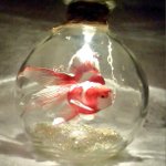 #金魚の日 桜天女。 という品種の金魚です。 金魚のうろこは赤けれども その目のいろのさびしさ。 さくらの花はさきてほころべども かくばかり なげきの淵ふちに身をなげすてたる我の悲しさ。 萩原朔太郎「金魚」 #切り絵ボトルアート