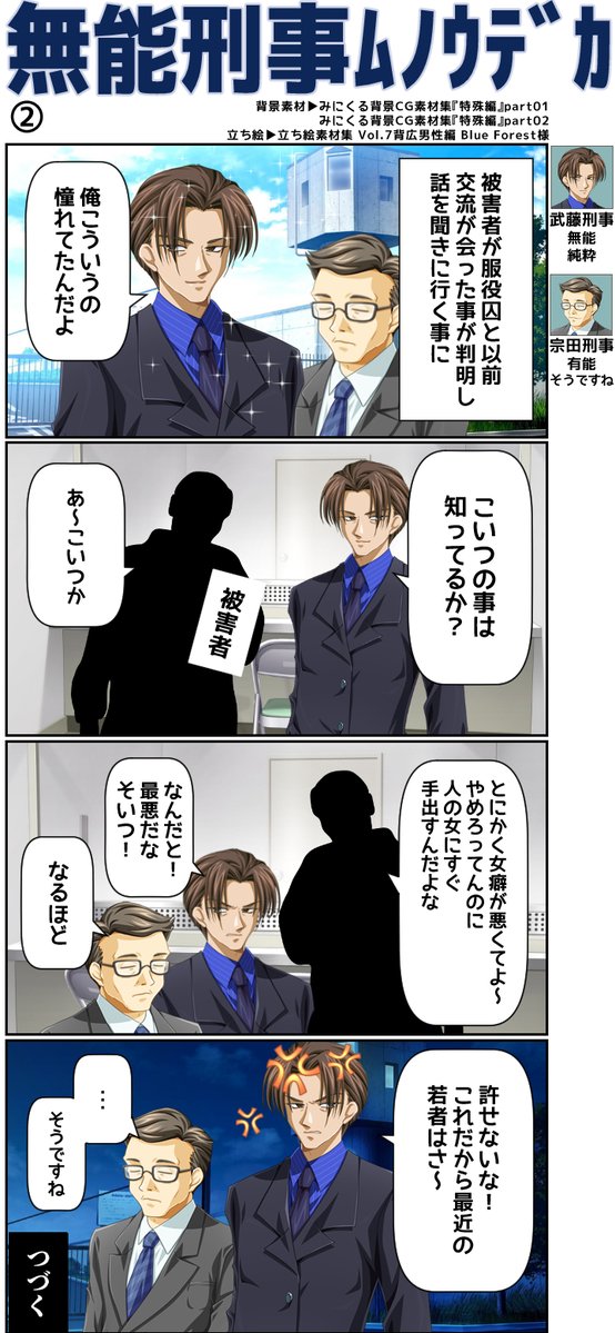 #みにくる使用例 無能刑事 ムノウデカ ②👮 みにくる背景CG素材集『特殊編』 DLsite▼ dlsite.com/home/fsr/=/lan… Fanza▼ dmm.co.jp/search/=/searc… #背景画像 #背景イラスト #背景 #4コマ #漫画がよめるハッシュタグ #4コマ漫画 #サスペンス #刑事
