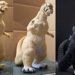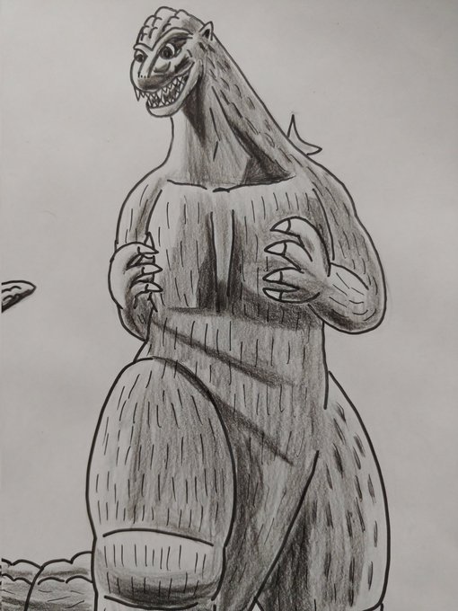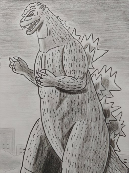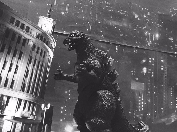 #夜のフィギュア撮影会 お題『怪』過去作 怪獣王ゴジラ!#ゴジラ #Godzilla #初代ゴジラ #ゴジラ1954 #ソフビ #ムービーモンスターシリーズ #ムビモン #オモ写 #白黒にするとどんな写真でもカッコよくなる