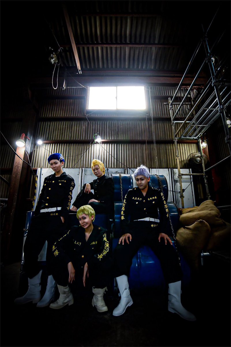 【COSPLAY】 東京リベンジャーズ 弐番隊(8.3抗争後) 三ツ谷隆:カミノニッチ 柴八戒:柚胡椒さん ぺーやん:おにぎりさん(@a_macotarow) タケミッチ:ひよさん(@hiyooooooo) 📸→かわろっくさん(@T_K06871053 ) location→スタジオブロンズ retouch→カミノニッチ #ニッチCOS #初代東卍併せ20221119