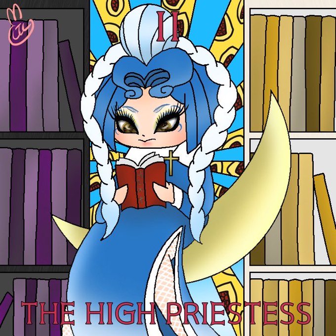 🔮タロットカードシリーズ🔮 『Ⅱ:The High Priestess(女教皇)』 古い図書館で本のどれかを押したら本棚が隠し扉になってるとかいいな。 #イラスト #タロットカード #図書館 #みんなで楽しむTwitter展覧会 #私の絵柄が好みって人にフォローされたい #初夏のカラフル芸術祭 #illustration