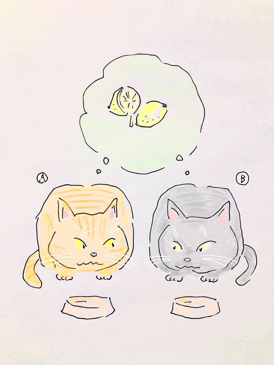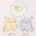 🐱A: なあ知ってるかにゃ? 🐱B:何をかにゃ? 🐱A: 何でも初めてのキスは🍋の味らしいにゃ❗️🐱B: え〜あんなすっぱいのかにゃ〜💦 byまだ恋愛経験のない食後の🐱AとB #1コマ #イラスト #初恋の日 #猫 #キス #想像 #イラスト好きな人と繋がりたい #猫好きさんと繋がりたい #絵描きさんと繋がりたい