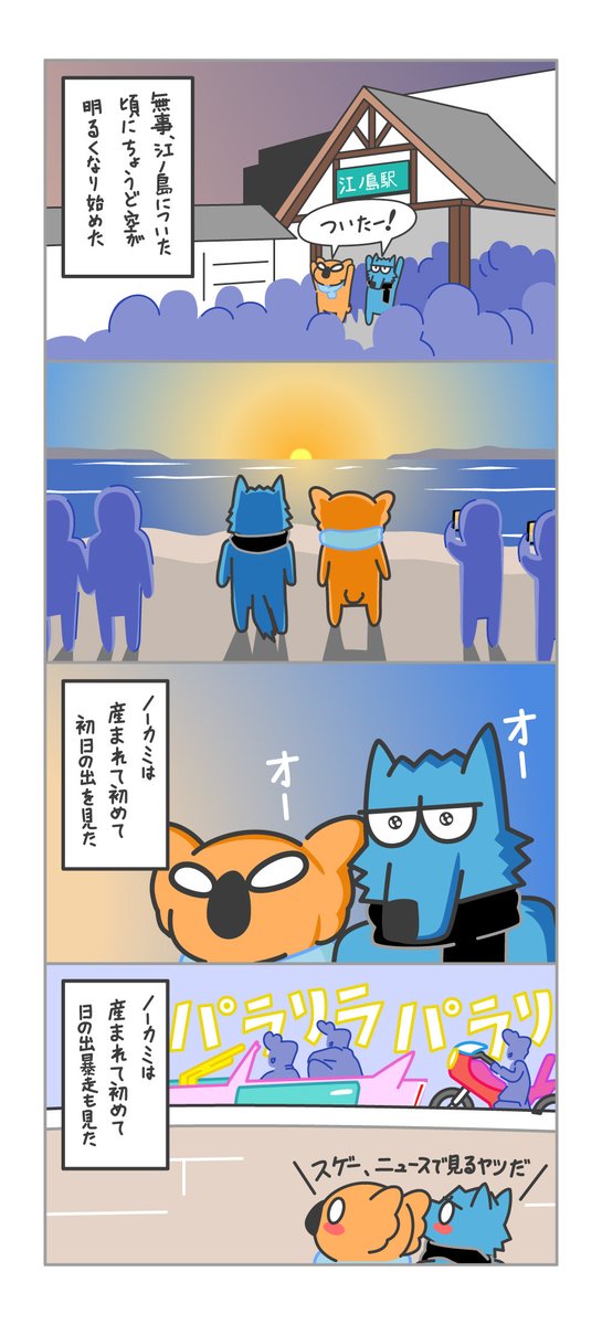 【初日の出①】(1/2) お正月に初日の出を見に行った日記🌄稲垣さん( @yoshimi44312 )と共に横浜ランドマークタワーへ🏃♂️…つづく。 #いとうちゃん #厭うちゃん #4コマ漫画 #漫画が読めるハッシュタグ #横浜ランドマークタワー #初日の出 #スカイガーデン #みなとみらい