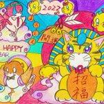 #寅年イラスト #寅年年賀状 #年賀状2022 #HAPPYNEWYEAR2022 #illustration #お正月 #初日の出 #虎 #小鳥 #あけおめ #あけましておめでとうございます 招きスフィンクス虎🐯とスズメ組が皆様にご挨拶 「今年もよろしくお願いします🐅🐤」 コロナが終息して幸多き年になりますように❣🌸
