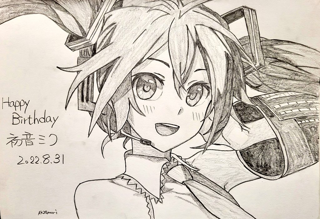 ミクちゃん誕生日おめでとぉお!大好きだよ!!!!急いで書いたから線画だけ(´>∀<`)ゝ #初音ミク誕生祭2022 #初音ミク #初音ミク誕生祭 #初音ミク生誕祭 #初音ミク誕生日2022 #イラスト