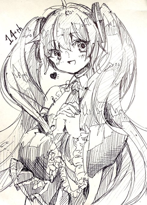 遅れちゃったけど ミクちゃんお誕生日おめでとう! え?描いた日にちが8月31日って書いてあるって? ・・・勘のいいガキは嫌いだよ #初音ミク生誕祭2021 #初音ミク14thAnniversary