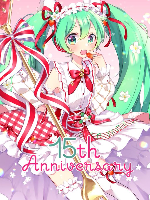 ミク誕!!! 15周年のイチゴミク衣装を描きました!15だからイチゴなのね!!! 今回もキラキラで花もたくさん描けましたあああああ!!!!!!! #初音ミク誕生祭2022 #初音ミク生誕祭2022 #初音ミク15周年 #いいねかRTで気になった人フォローする