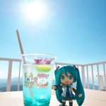 #深夜の初音ミク撮影60分一本勝負 11/16のお題【記念】「フライング」 #ぬいぐるみの時間 十国峠のミクさんコラボドリンクです。 コップは記念に持って帰りました☺ #初音ミク #初音ミクATAMI #十国峠