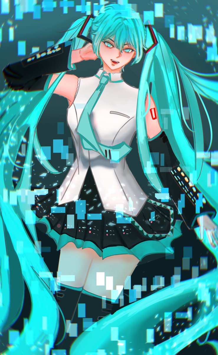 “遠く仰いだ空に花泳ぐ この目覆う 藍二乗 (あいにじょ)(I need you)💙🔷☁️💧 #藍二乗 #ヨルシカ #初音ミク #初音未來 #初音未来 #digitalart #digitalpainting #iPaddrawing #illustration #rkgk