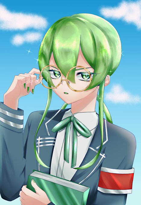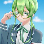 #制服の国企画第2弾 ジェードで参加させていただきました💚✨ メガネっ子ジェードってあんまり見た事ない!? と思って丸眼鏡の風紀委員的なジェードです☺️ 背景考えてなくて、青空になりました!!!