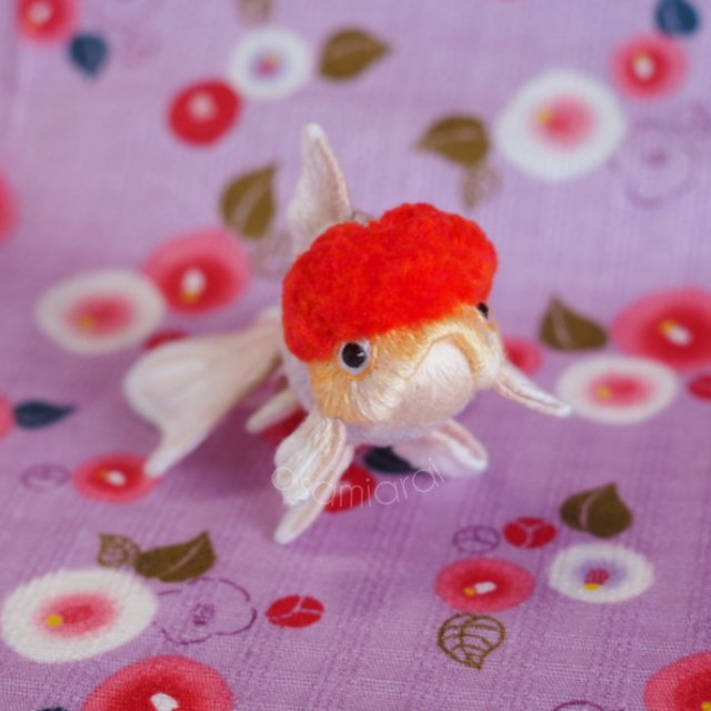 #まだまだこういうのが好きな人がいるはずなのでどうか届きますようにRTおねがいします 接着剤を使わず刺繍だけで仕立てた金魚です。よろしくお願いします😊 #刺繍作品です #手鞠金魚 #刺繍造形 #刺繍 #金魚 #embroidery