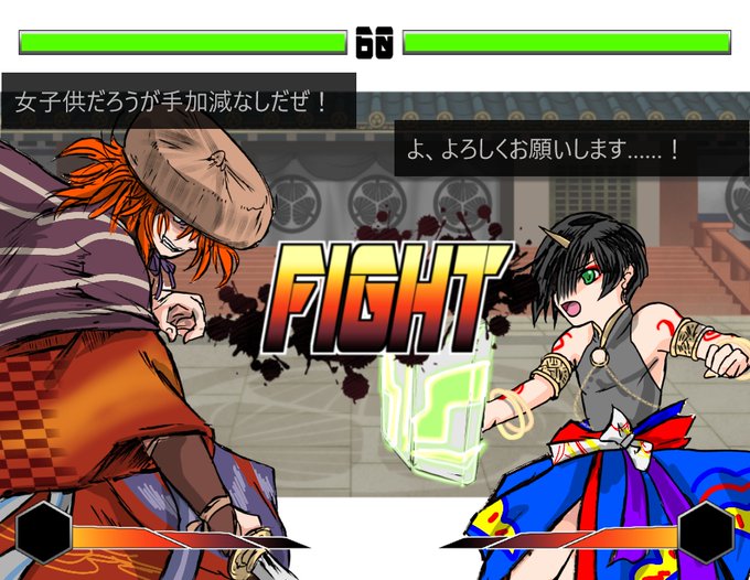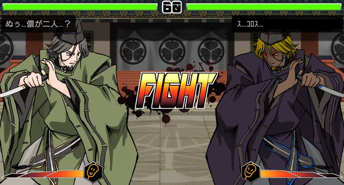 9歳と真剣勝負をする35歳(格ゲー風) 素材はすまきさん(@sumaki20)のをお借りしました。 twitter.com/sumaki20/statu… #心生誕祭 #荒木又右衛門生誕祭 #剣が刻_ファンアート