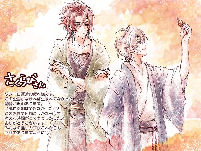 #剣が腐刻ワンドロいつもありがとう💐 さくらびさんへ|ω·)و ̑̑༉ いつも運営ありがとうございます!✨今までのお題更新とても楽しかったです♥お陰様で沢山の推しカプと様々なカプに出会えました。 これからもさくらびさんの考えてくださったお題を噛み締めて行きたいです。 ↓