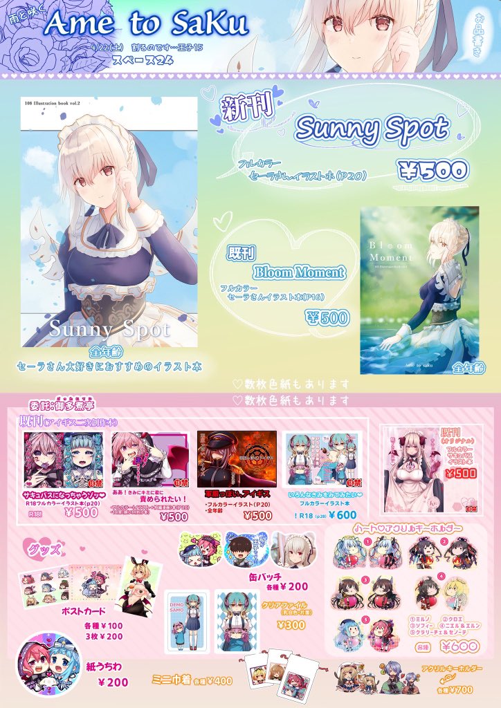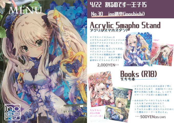 4/22『割るのです…王子15』のおしながき! シビラちゃんの大きなアクリルスマホスタンドが新グッズ! 既刊シビラちゃん本とトラムちゃん様本も持っていくよ! 参加は登録を忘れずに! どうぞ宜しくお願いします~!! #割るのです王子 asagohan.sakura.ne.jp/aigis/