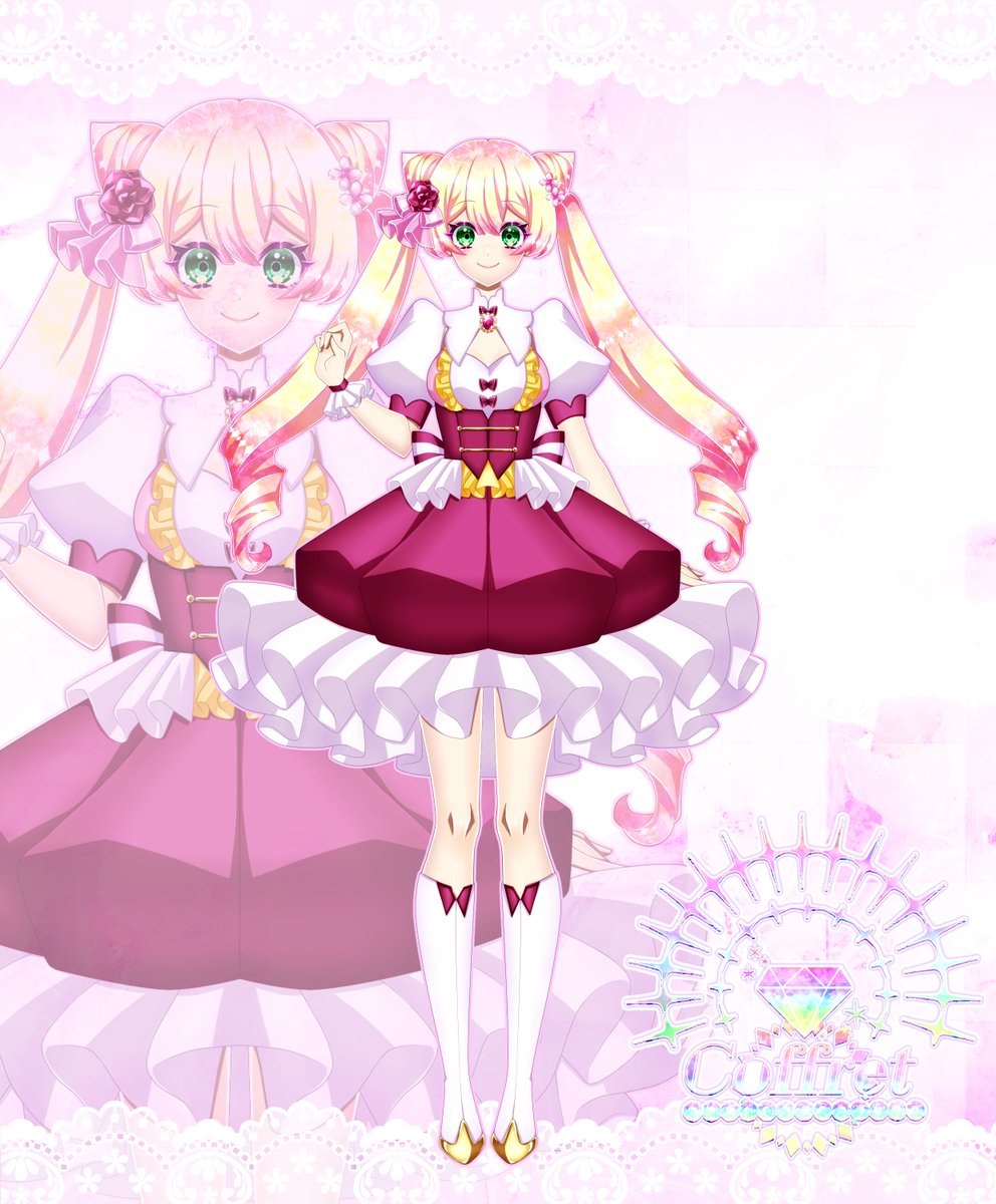 ロゼちゃんの立ち絵完成💎✨ キャラシはメンバー全員の立ち絵(現実姿含む)が完成してから用意するのだわ~👗 #jewelry_tale #創作 #オリジナル #創作アイドル #夏の創作クラスタフォロー祭