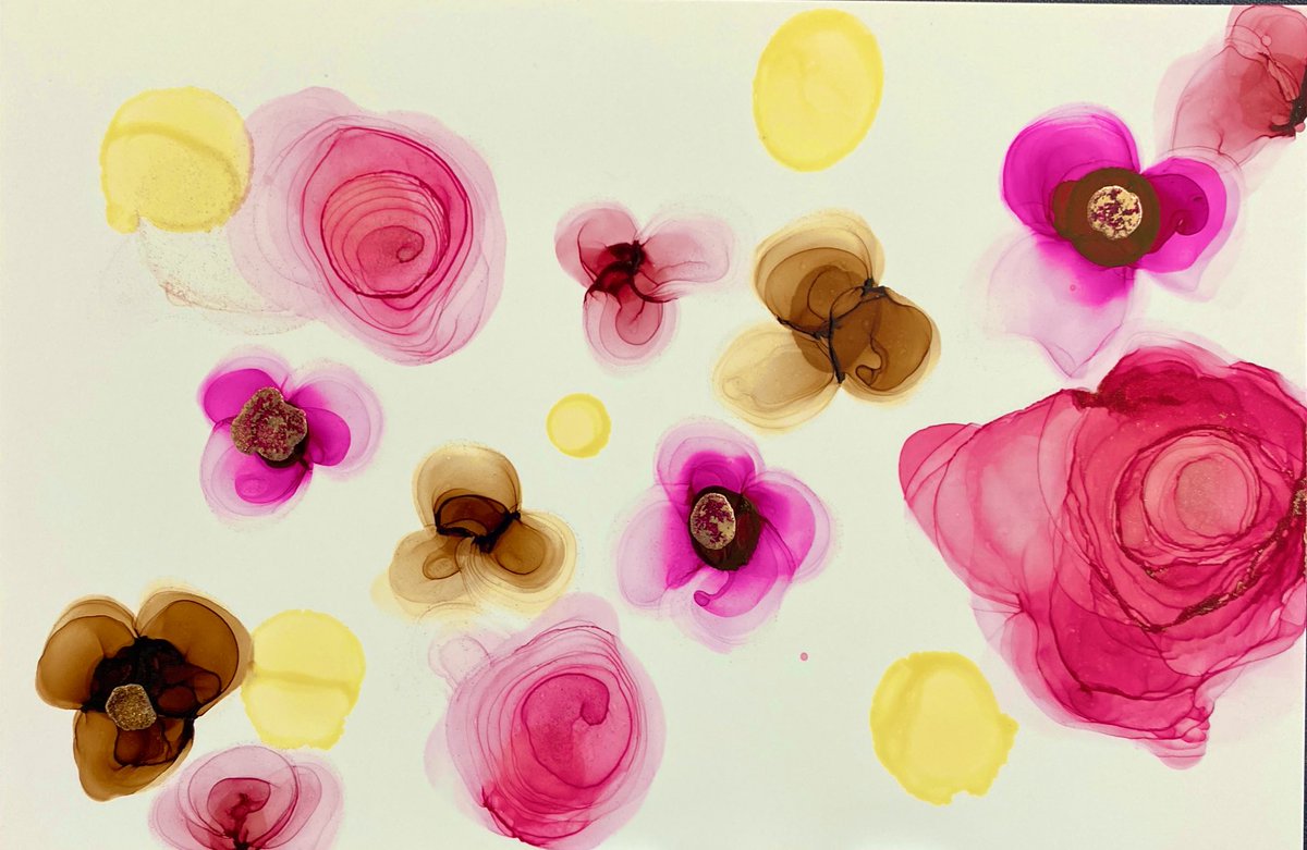 今日のお昼は アルコールインクアートの小花 強化練習してた〜🌷⭐️ 小花むずい… 集中力ないと無理ぃ… 薔薇に逃げがち😂🌹 #アルコールインクアート #コピックインクアート #コピック #創作アート #インク沼
