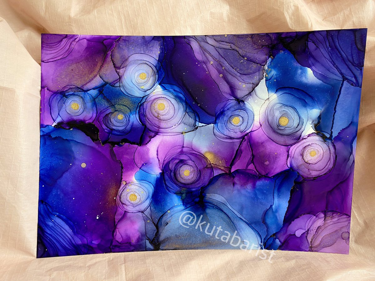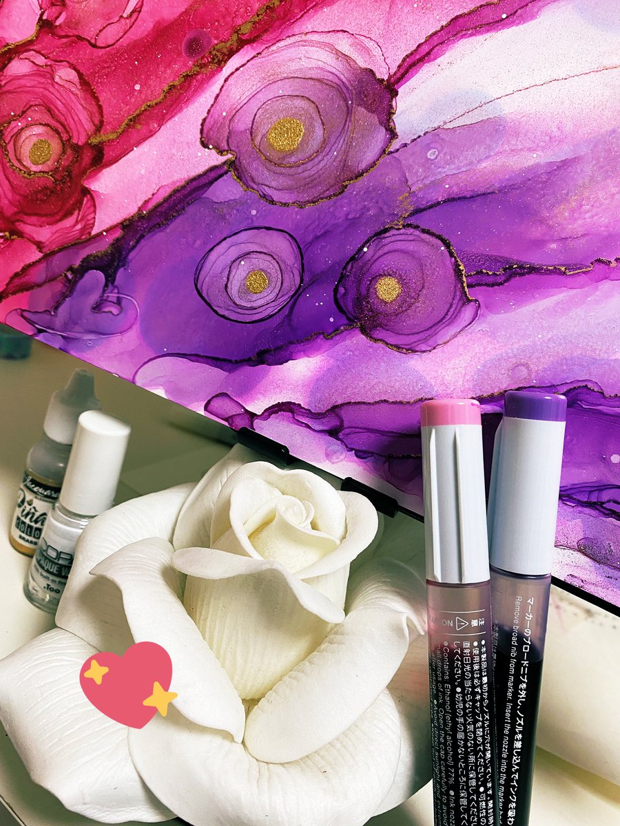 た、楽しかった〜🥹🌟 インク動かしやすくて最高だった✨ お値段が15枚で2000円だから なかなか気軽には使えないけど これは良いアルコールインクアートペーパー👍 #アルコールインクアート #コピックインクアート #コピック #創作アート