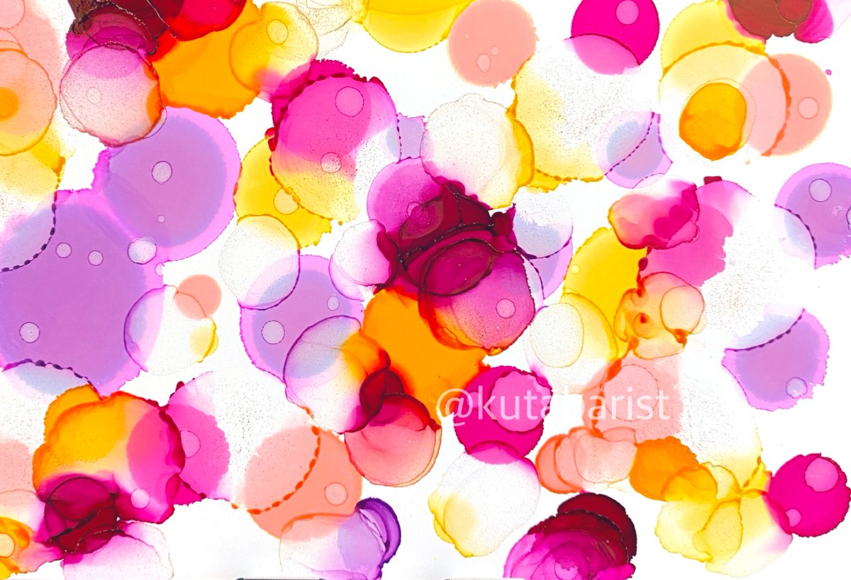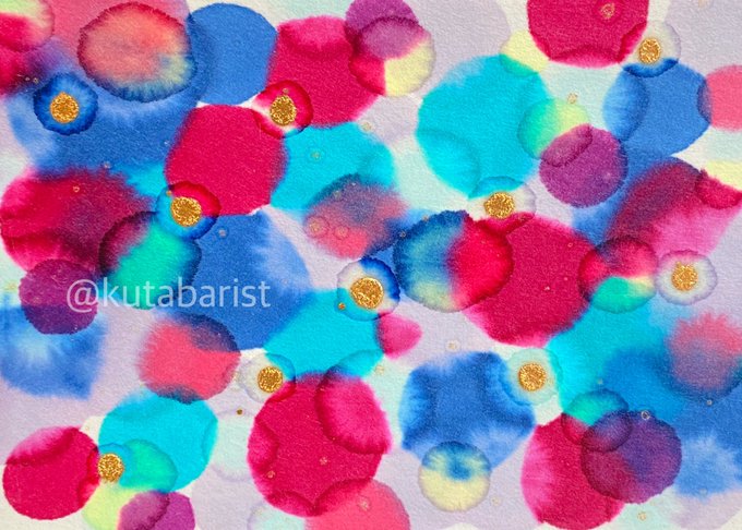 画箋紙で 気ままにインクアート🌈 インクを風で動かせないけど タイダイ柄っぽくて面白いね🥹🌟 うすい色をおくと じわ〜と模様みたいになる👏 #アルコールインクアート #コピックインクアート #コピック #創作アート
