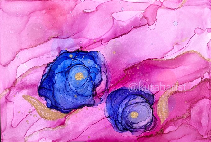 少し小花のコツ掴んだ気がする… 案外音楽聴きながら ゆったりした気持ちでやる方が うまくいく気がする…気が…するだけ…w #アルコールインクアート #コピックインクアート #コピック #創作アート