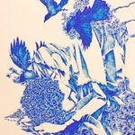 新作制作開始! 「風」がテーマの作品です 加筆したところが気になったので、修正! #キャンバス #赤青色鉛筆 #アクリル絵具 #ジェッソ (@HolbeinArt ) #絵描きさんと繋がりたい #創作クラスタさんと繋がりたい #制作過程の写真だけで興味を持ってくれる方へ届け