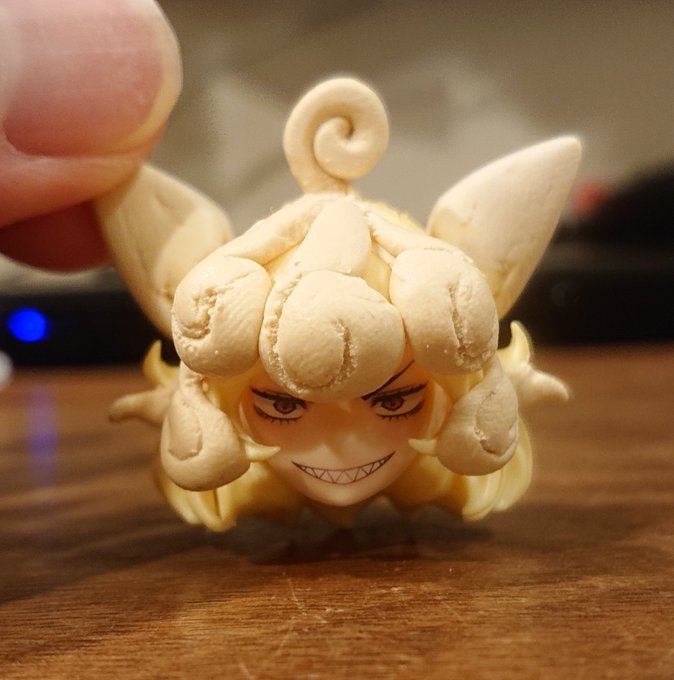 特徴的なゼンマイヘアー、アホ毛も後ろ髪のくるんくるんも頑張って作りました! 2又の尻尾も作成!! これでもかと言う程ののじゃロリ猫を再現しました(ಡ皿ಡ) #創作女児小学生ズ #創作女児小学生ズ立体化計画