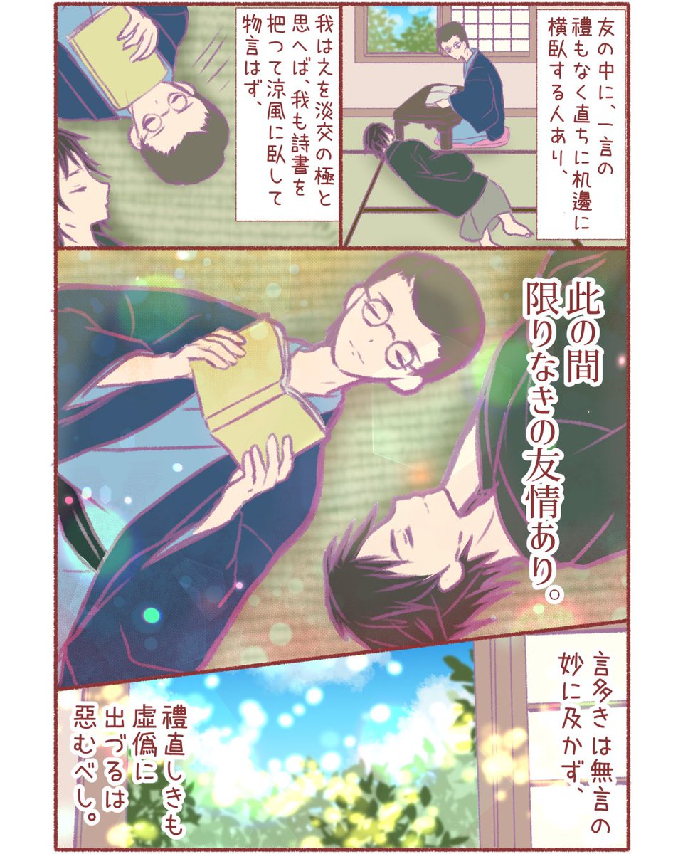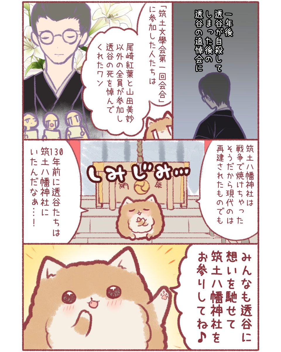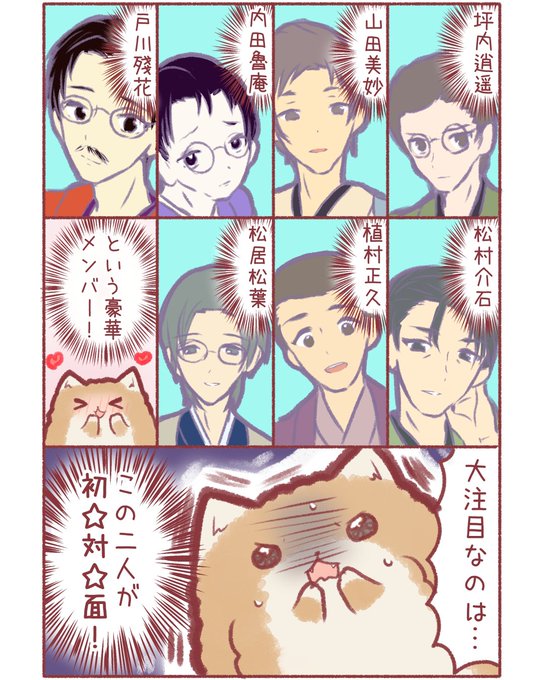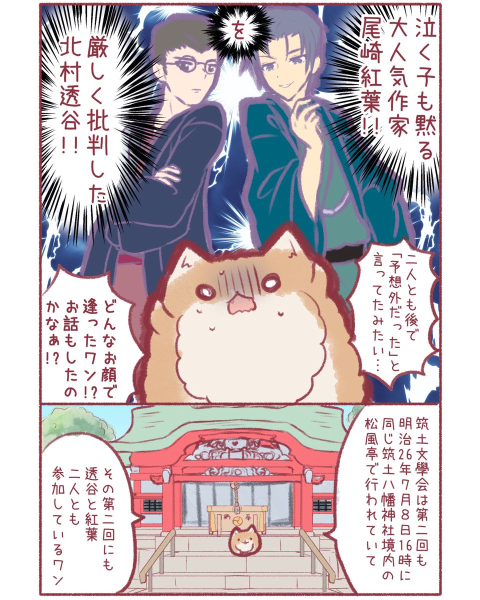 今日は明治26年に筑土八幡境内松風亭で「筑土文學会 第一回会合」が行われた日だワン🐾 「筑土文學会 第一回会合」の参加者は、とっても豪華なこの方達ワン🎶(1/2) #漫画が読めるハッシュタグ #創作文壇 更に今日は明治26年に北村透谷が「評論」で 「熱意」 「『腓立比物語』(櫻井明石)を讀む」→