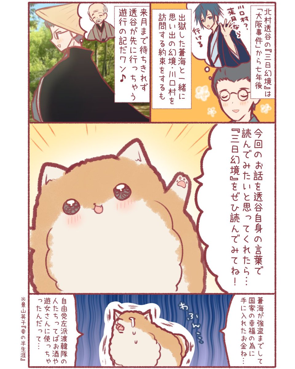 今日は明治26年に北村透谷が「聖書之友雜誌」で 『人に對する神の旨』 『クロムウェル時代の英國の聖書』 を発表した日だワン🐾 透谷文学の基盤になった自由民権運動。『三日幻境』から特に重要な部分を誰にでもわかりやすくふわふわに解説するワン🐾 #漫画が読めるハッシュタグ #創作文壇