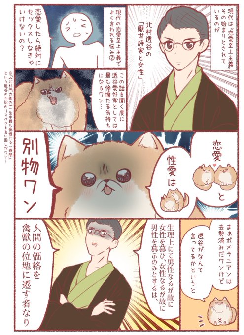 現代の恋愛至上主義の始まりとされている北村透谷の『厭世詩家と女性』 その中で透谷が「性行為」についてなんて書いているかをポメラニアンがふわふわに解説するワン🐾 #漫画が読めるハッシュタグ #創作文壇