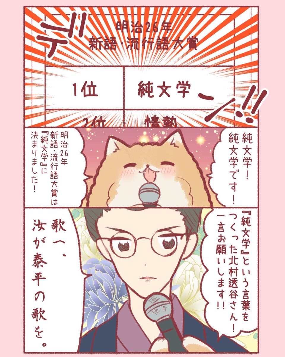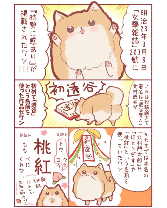 今日は明治26年に北村透谷が「文學界」で『人生に相渉るとは何の謂ぞ』を発表した日だワン🐾 みんなは“純文学“って言葉、知ってる? “純文学“って言葉をつくったのはね…ふふ! #漫画が読めるハッシュタグ #創作文壇