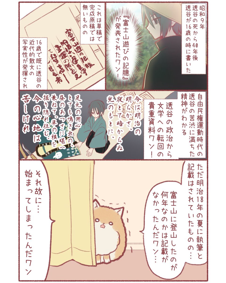 今日は北村透谷が明治25年に「白表紙女學雜誌」で 『三日幻境』 を発表した日だワン🐾 #漫画が読めるハッシュタグ #創作文壇 北村透谷は自分の人生を変えた運命の人が2人いると言っているワン🐾 1人は「恋愛は人世の秘鑰なり」 現代の恋愛至上主義の始まりとなった妻、美那子 もう1人は…ふふ!
