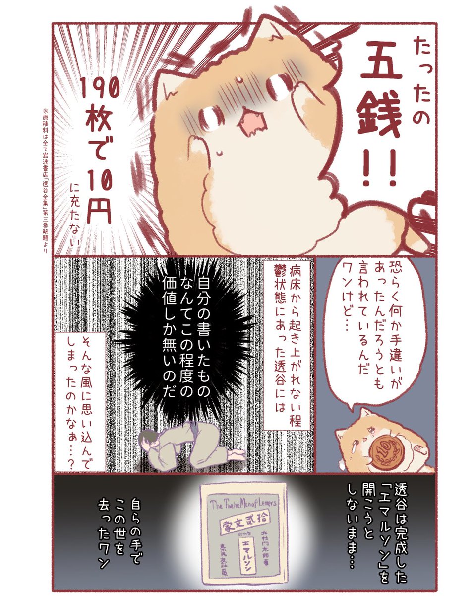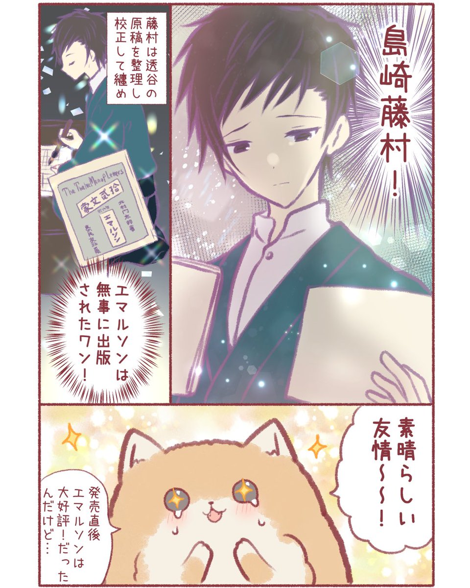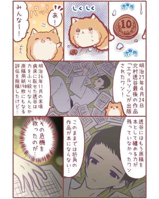 北村透谷、最後の作品 「十二文豪 第六篇『エマルソン』」 病床に臥せた透谷の190枚もの原稿を纏め本に仕上げてくれた友の友情と 「エマルソン」が“透谷の自殺の運命“とかかわることになったと言われる理由のふわふわな解説だワン🐾 #漫画が読めるハッシュタグ #創作文壇
