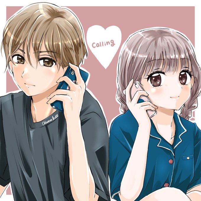 「もしもし、きこえますか?」 「もしもし、きこえてますよ」 うちのバカップルちゃん😘❤️ 素敵なタグ便乗させていただきました❤️ #創作男女CPラブラブイラストでTLを埋め尽くす会 #イラスト