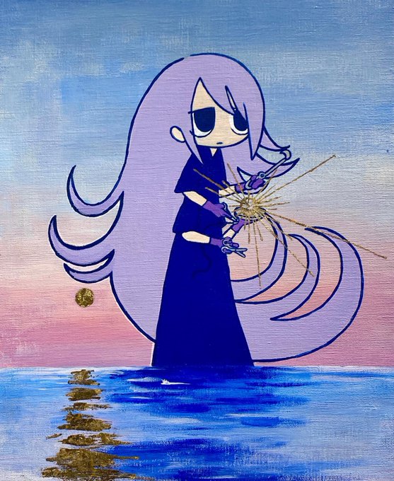 昼休み画。今日はむらさきベースでした。朝焼けか夕焼けを背にしてる感じで。おやすみなさい。 #イラスト #插图 #illustration #色鉛筆 #リーズナブルお絵描き #ぬり絵 #創作画 #おやすみなさい