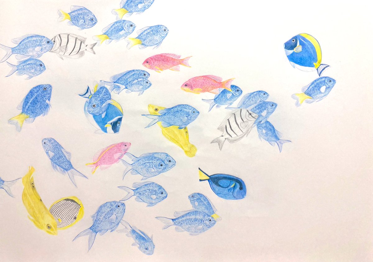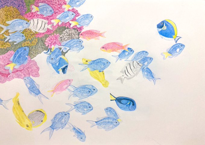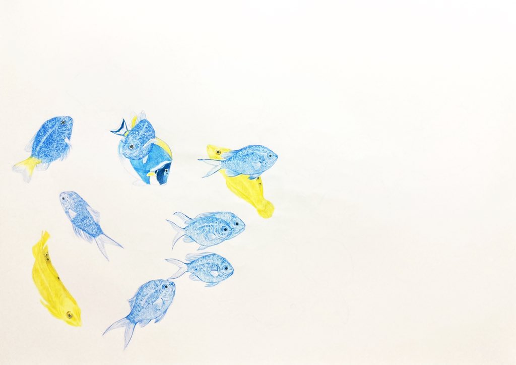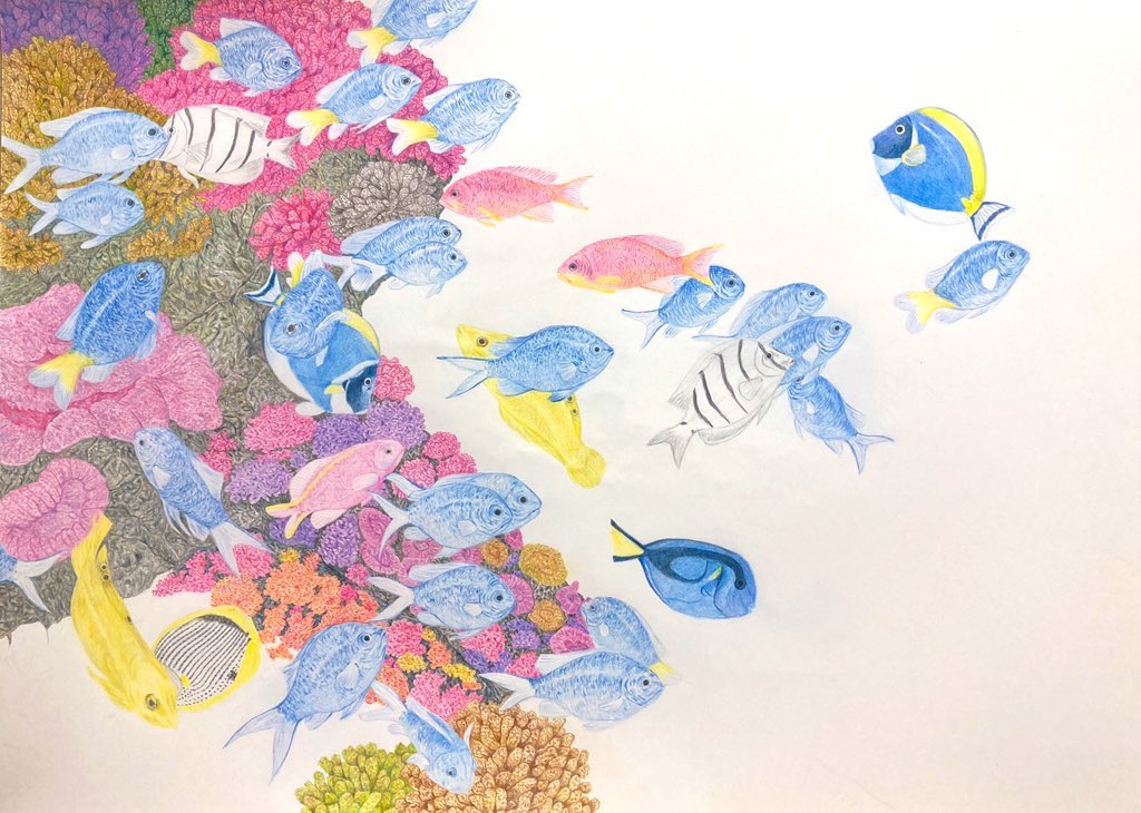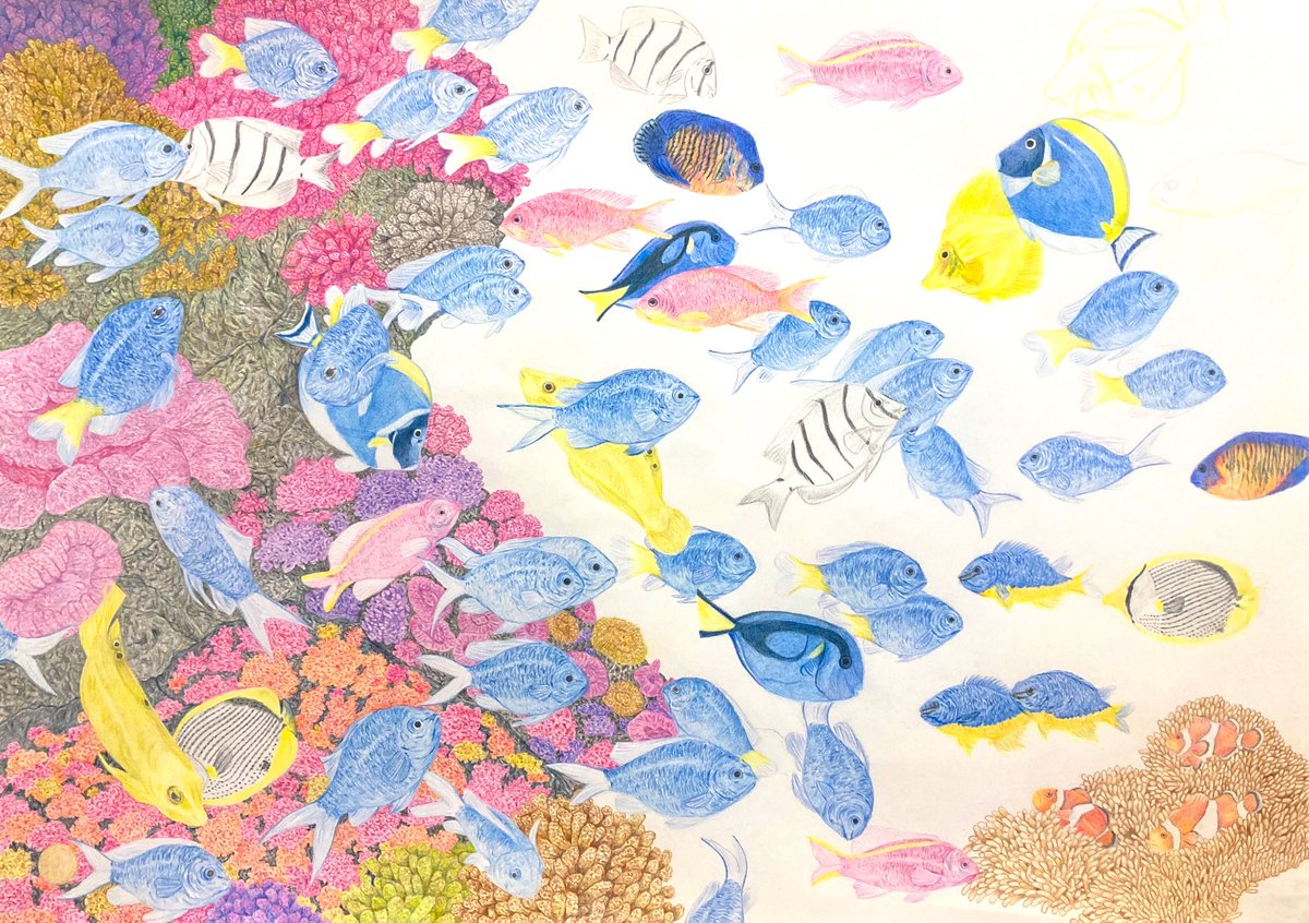 色鉛筆画【 創作途中 】 #色鉛筆 #色鉛筆画 #絵画 #絵 #創作途中 #魚 #pencilart #colorpencil 新しい作品に取りかかりました。 A2サイズの作品になります。 完成目指して更にコツコツ描き込んでいきます。