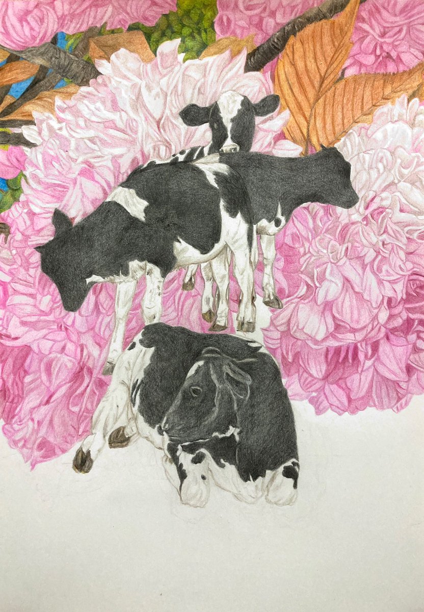 色鉛筆画【 創作途中 】 #色鉛筆 #色鉛筆画 #絵画 #絵 #創作途中 #牛 #pencilart #colorpencil 新しい作品に取りかかりました。 A4サイズの作品になります。 まだまだ雑ですが更にコツコツ 描き込んでいきます。