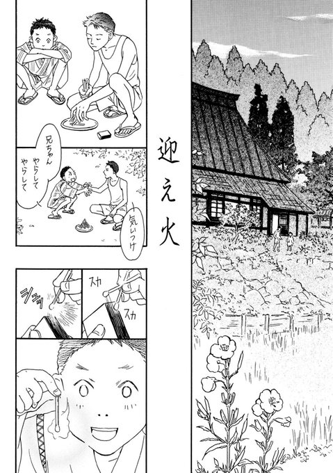 盂蘭盆に迎え火を焚く少年のちょっと不可思議な体験を描いた「迎え火」1/4 昭和に生きる兄弟たちの物語を集めた短編集「半夏生」より さらりとした木綿の様な手触りの物語。 シーモア cmoa.jp/title/270754/ Amazon amazon.co.jp/%E5%8D%8A%E5%A…… #創作BL大豊作まつり #漫画が読めるハッシュタグ
