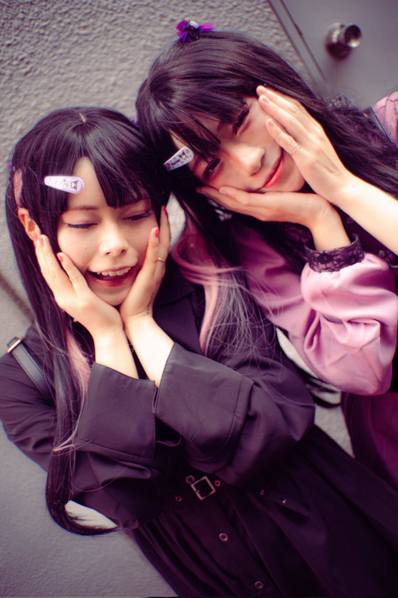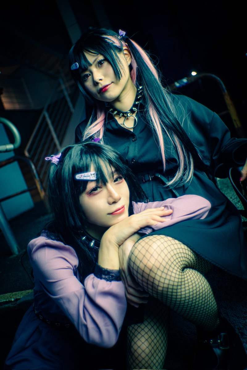 *創作コス、全縦写真、タップ必須* 🥹❤ 双子地雷系コーデ 色んな表情をのせて 😈💜 黒ワンピツインテちゃん⇒あーちゃん @negitorodazoo 可愛いしかっこいいうちの嫁☺️☺️ 📸⇒よっしーさん @red8agate21 #地雷コーデ #創作コスプレ #創作cosplay