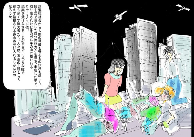 #フォロー返します #みんなで楽しむTwitter展覧会 #beyond19854 #作品展示会 #ArtistOnTwitter #一次コミ #oc #創括 現在、アジア圏の某都市では無人の撮影ロボットが街を走り回っていて外出禁止令の違反者を監視しているそうです。ロボットを導入した超監視社会は決して夢物語ではありません。