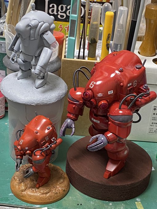 1/20ヴィーナスーツとりあえず、塗装!じっくり塗りたいけど作業完了を優先する。イベント直前は毎度時間が足りなくなる。毎回反省している。締め切りがあるから作業が終わるのである。1/35と比べるとデカいなーと、しみじみ思う。 #マシーネンクリーガー #横山宏 #創星記