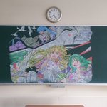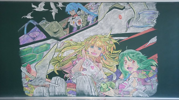 今回の黒板アートは特別版‼️ #劇場版マクロスΔ絶対LIVE!!!!!! #劇場短編マクロスF時の迷宮 の円盤発売記念で~す😍 皆さんTLでフラゲの報告羨ましい…😢 悔しいのでアップも1日フライングで😆 Δは前に描いてしまったので、今回はFのお三方です😊 #シェリル・ノーム #ランカ・リー #早乙女アルト