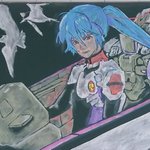 先週の特別版に➕しました~☺️ さて、1枚目と2枚目の違いはなんでしょう~?🤔 答えは3枚目~🥰 公開されていたイラストとBDのジャケットで、オオサンショウウオさんが追加されていました~🥰 他に何か追加要素ありますかね…🤔? #劇場版マクロスΔ絶対LIVE #劇場短編マクロスF時の迷宮 #黒板アート