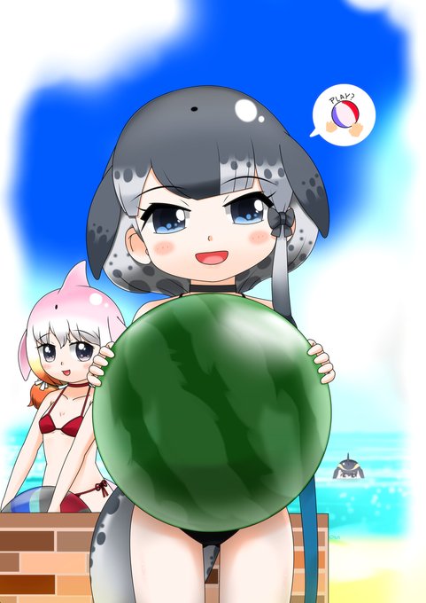 Taichou-san wanna play?🏖️ 🏀 #けものフレンズ #动物朋友 #kemonofriends #イッカク(けものフレンズ) #シナウスイロイルカ(けものフレンズ) #マイルカ(けものフレンズ) -- (1/1)