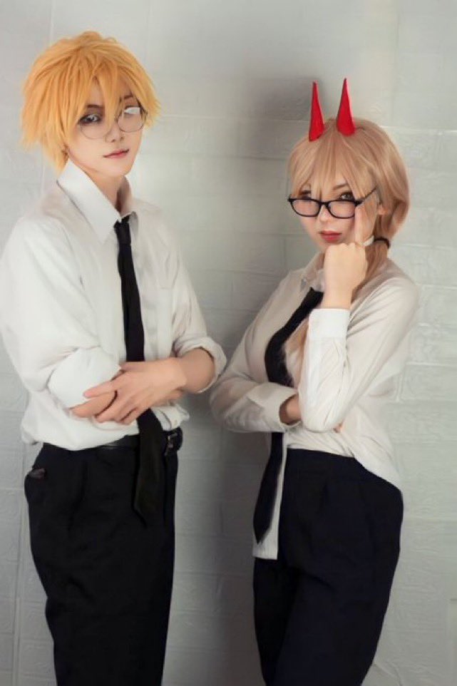 ⚠︎︎Cosplay⚠︎︎ チェンソーマン 「超インテリ作戦開始じゃ」 パワー ⇒ なの。 デンジ ⇒ きつね(@kitsune010cos) Photo⇒四様(@camera_azm) Studio⇒at home #努力未来チェンソ併せ110 #Cosplay