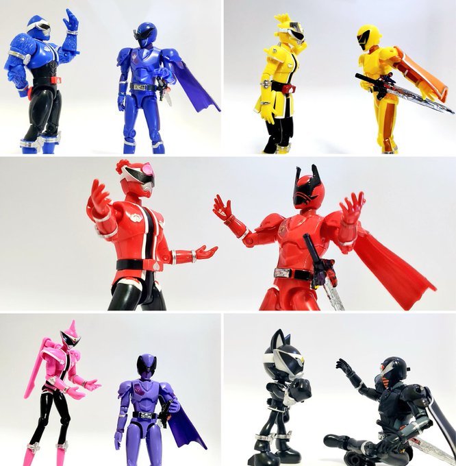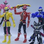 #勇動 #ゼンカイジャー #みんなのスーパー戦隊が見たい #夜のフィギュア撮影会 10/5 お題 『仲良し』 ジュラン「おいブルーン代わって」 ブルーン「撃っていいんですか~?」 マジーヌ「足支えるッス」 「ゼンリョクゼンカイフィナーレバスター!!」 ガオーン「あれ?ブルーンの上半分が無い⁉」