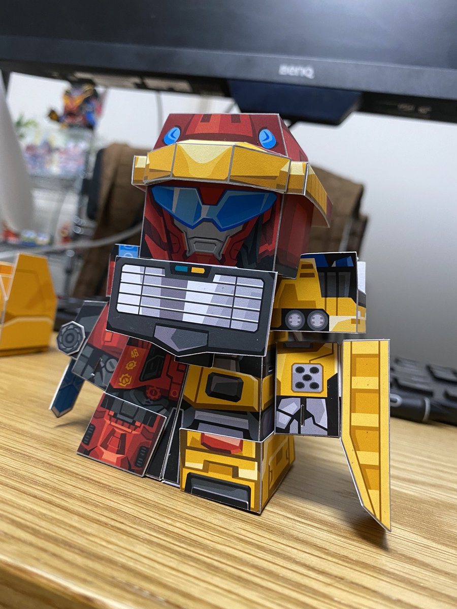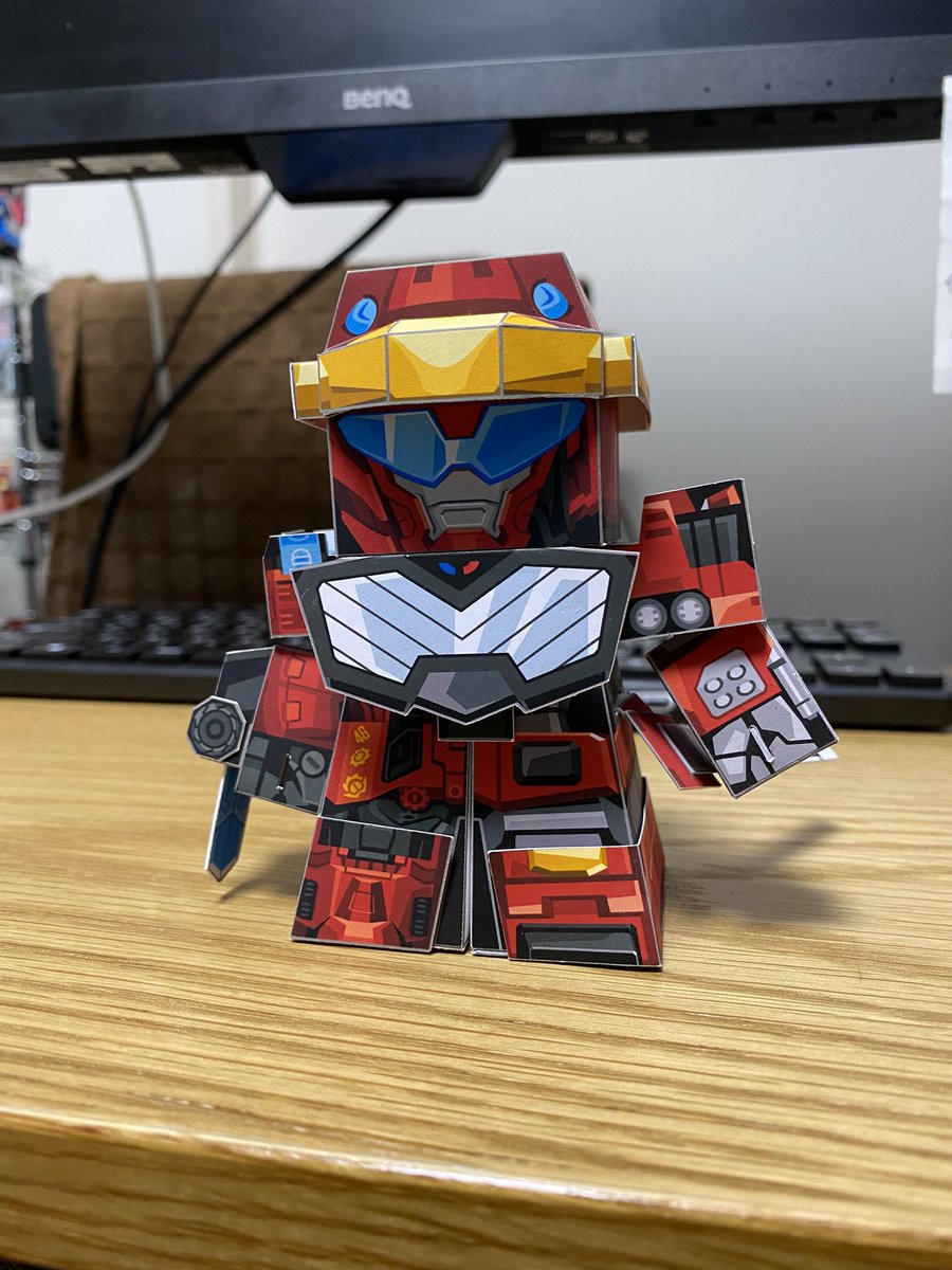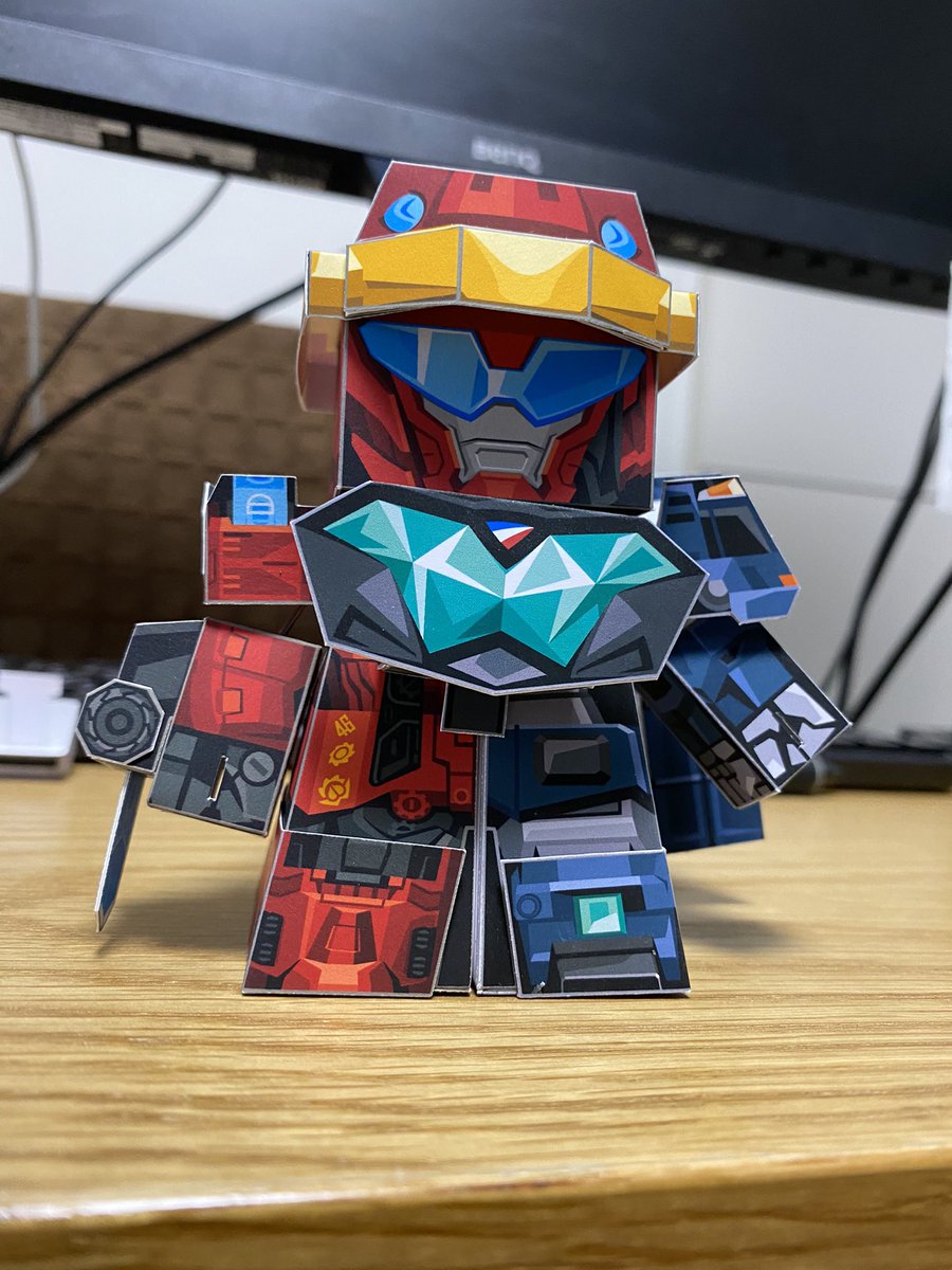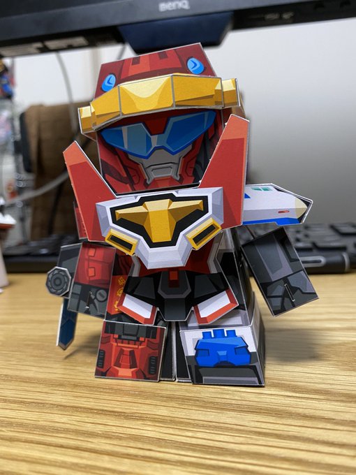 #ウルトラレイカー 先輩の試作できました。 本体は良い感じ 本編未使用の武器はバランス調整がやや必要かな ひとまずこれで左右合体シリーズは揃ったので 後は作り方動画作るだけだ って動画が一番手間かかるだけどね(;^_^A #Papercraft #ペーパークラフト #勇者エクスカイザー